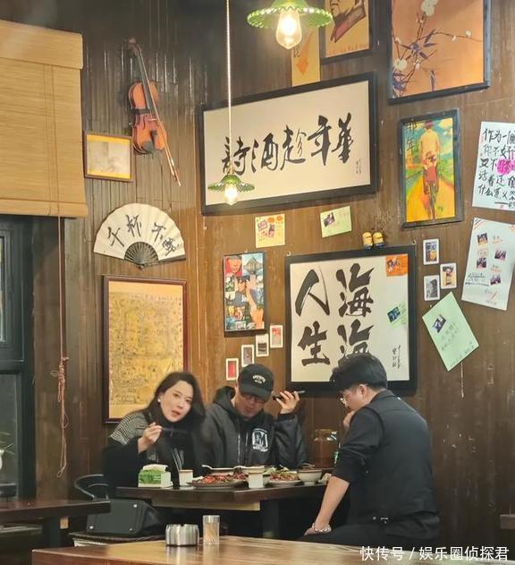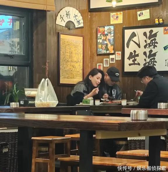 最近网上有小伙伴爆料,说前两天在新疆的一家餐厅里,瞅见汪峰带着女朋友森林北跟朋友们一块儿吃饭呢。从照片能看出来,俩人当天穿的是深灰色的情侣装,默契度这块儿拿捏得死死的。森林北那头长发都快到腰了,脸上就化了点淡淡的妆,看着特别清爽又有气质,上身穿着一件灰黑色的条纹长袖。再看旁边的汪峰,脑袋上扣着顶黑色棒球帽,身上那件黑色皮衣样式的棒球服,还是咱们印象里那股子摇滚老炮儿的劲儿。
